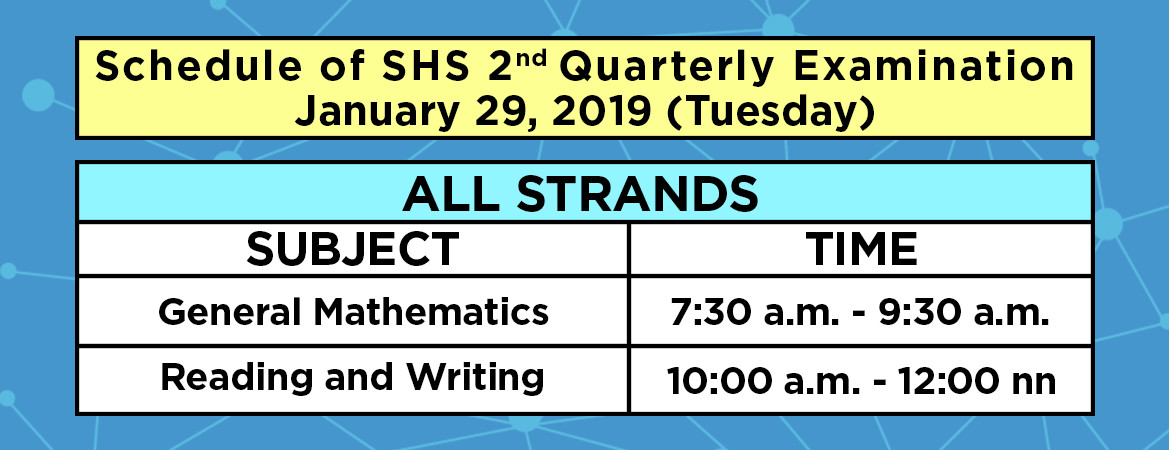 ** Click the photo below to see the schedule the SHS 2nd Quarterly Exam.
